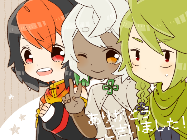 この三人だけを一緒に描くのは何気に初だった(というか設定画描いて以降まともに描けてない)ので何だか新鮮な気持ちでした(?)しかし満天星のお礼する気のなさ…何故汗をたらしている…ザワッ